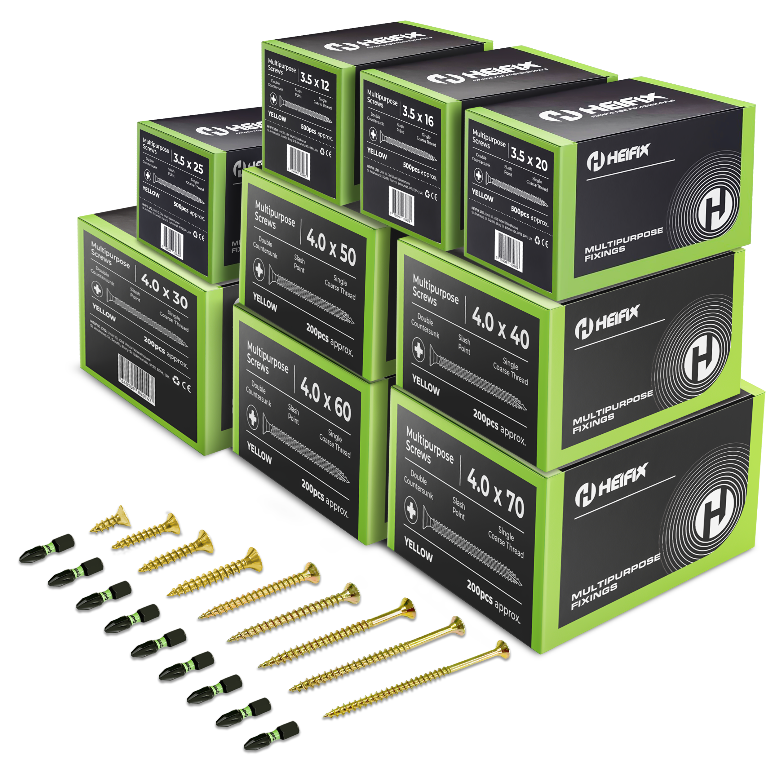 3000 Piece Wood Screw Assortment Bundle – Pozi Double Countersunk (3.5–4mm x 12–70mm) – Heifix