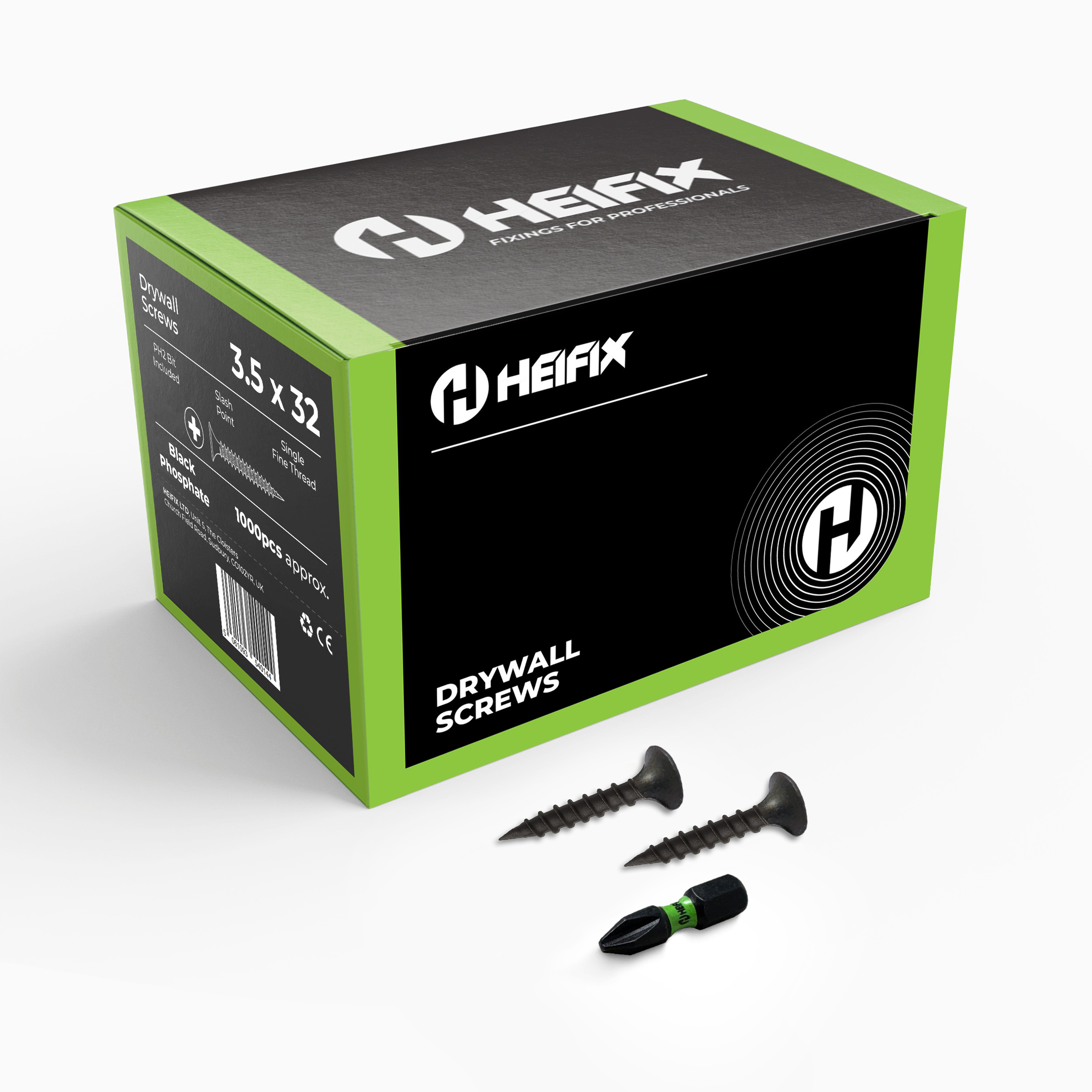 Drywall Plasterboard Screws – Free PH2 Screw Bit Included – Heifix