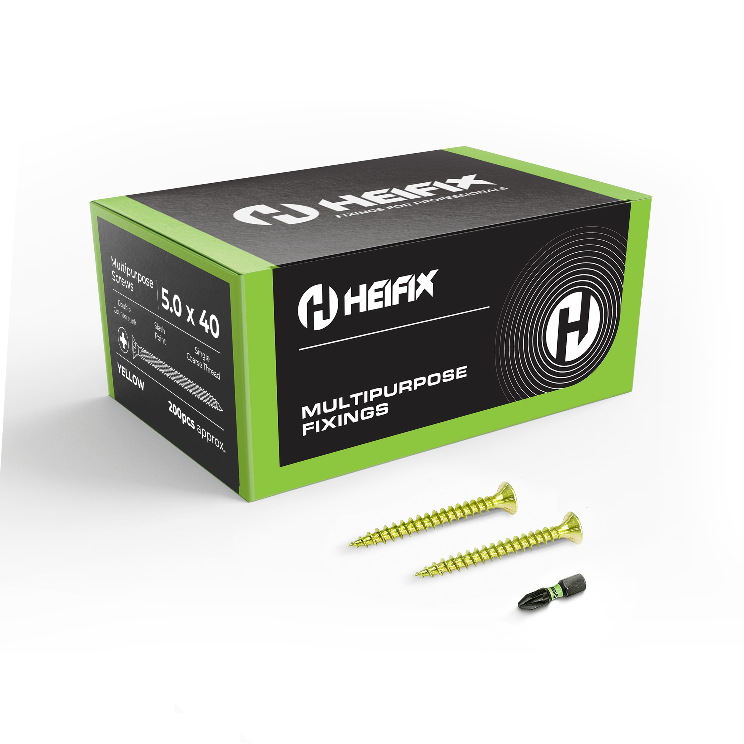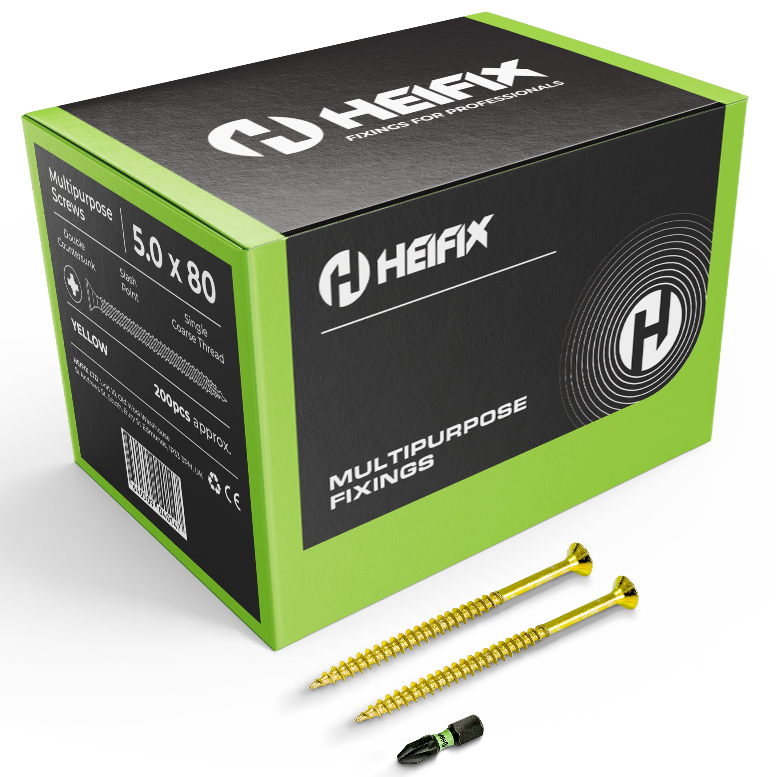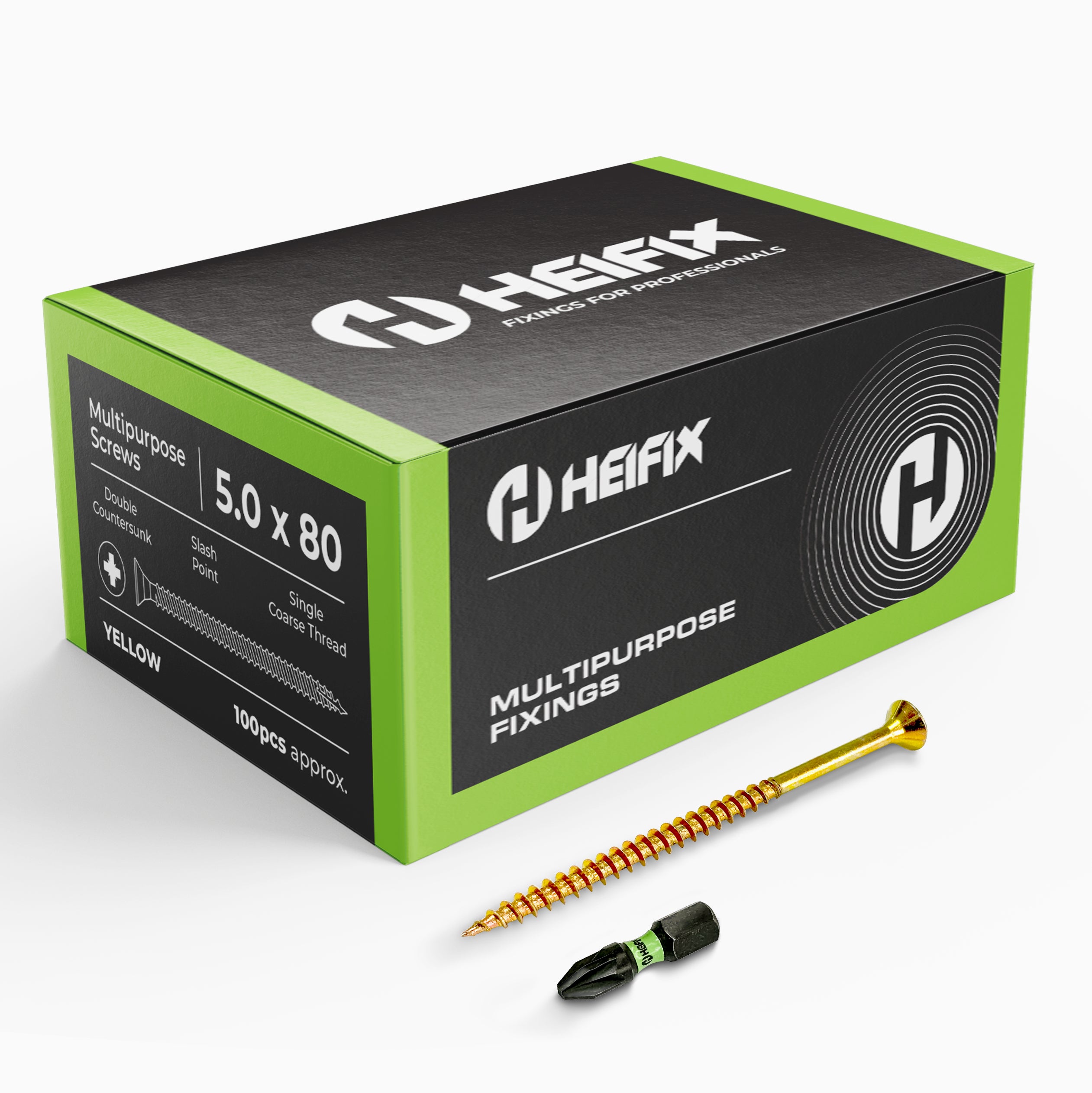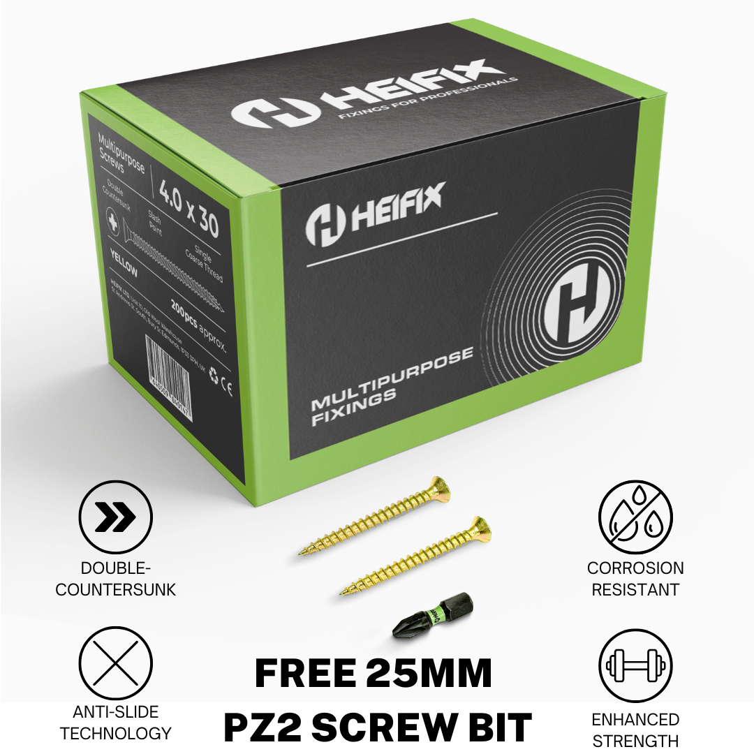 Multipurpose Wood Screws (Pozi, Double Countersunk) – Free Screw Bit Included – Heifix